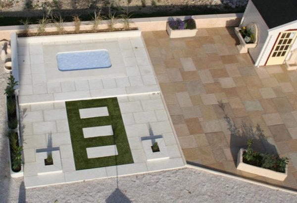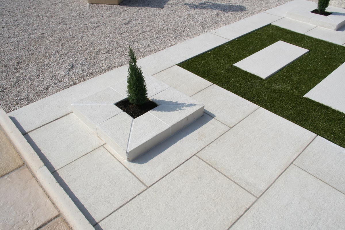 Désignation produit : Dalle grenaillée rectangulaire, ton ivoire ou gris, épaisseur 4 cm, le m².