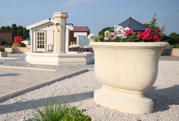 Grande vasque de jardin en pierre reconstituée, sur pied, modèle 18.
