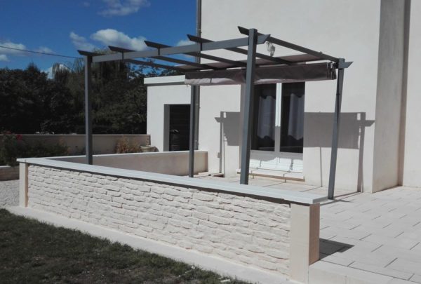 Mur de clôture préfabriqué, aspect pierres anciennes maçonnées, en pierre reconstituée ou béton préfabriqué décoratif.